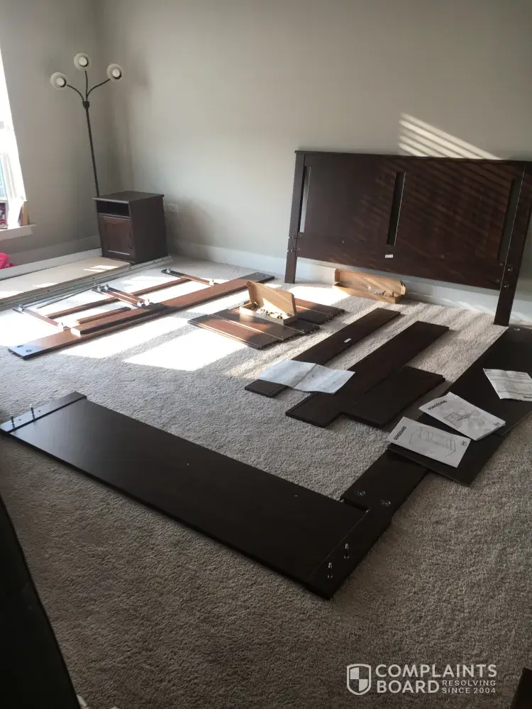 Besides the fact that most of the work has been not done, the bed was ruined as you can see from the picture.