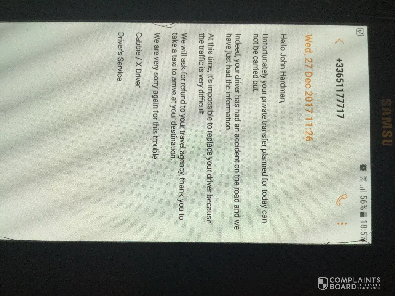 Read full complaintCabforce - taxi service