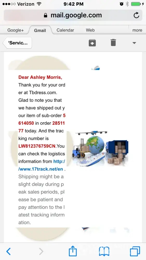 Tbdress is SCAM. Please do not order anything from them. They are FULL bunch of LIARES. have ordered a dress for my wedding, which was on February 14th and I have received it on February 21st. All dresses on the pictues look very beautiful, but the reality and truth is absolutely different. Even though you let them know you wedding day, they will be promising to send your dress on time, but you will never have it on time. So, please do not trust and not believe them. The main problem is that they are in China and you can not do anything about it. If you want to return it, you will never get the full refund, so forget about your money. Finally, I had to go to a store to buy me the wedding dress because I could not wait longer.