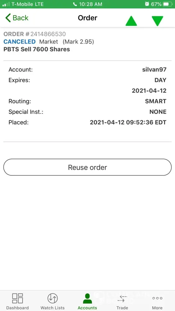At the open tried to sell the stock I that I had changed my mind on and had been bought against my intentions. But that got rejected.