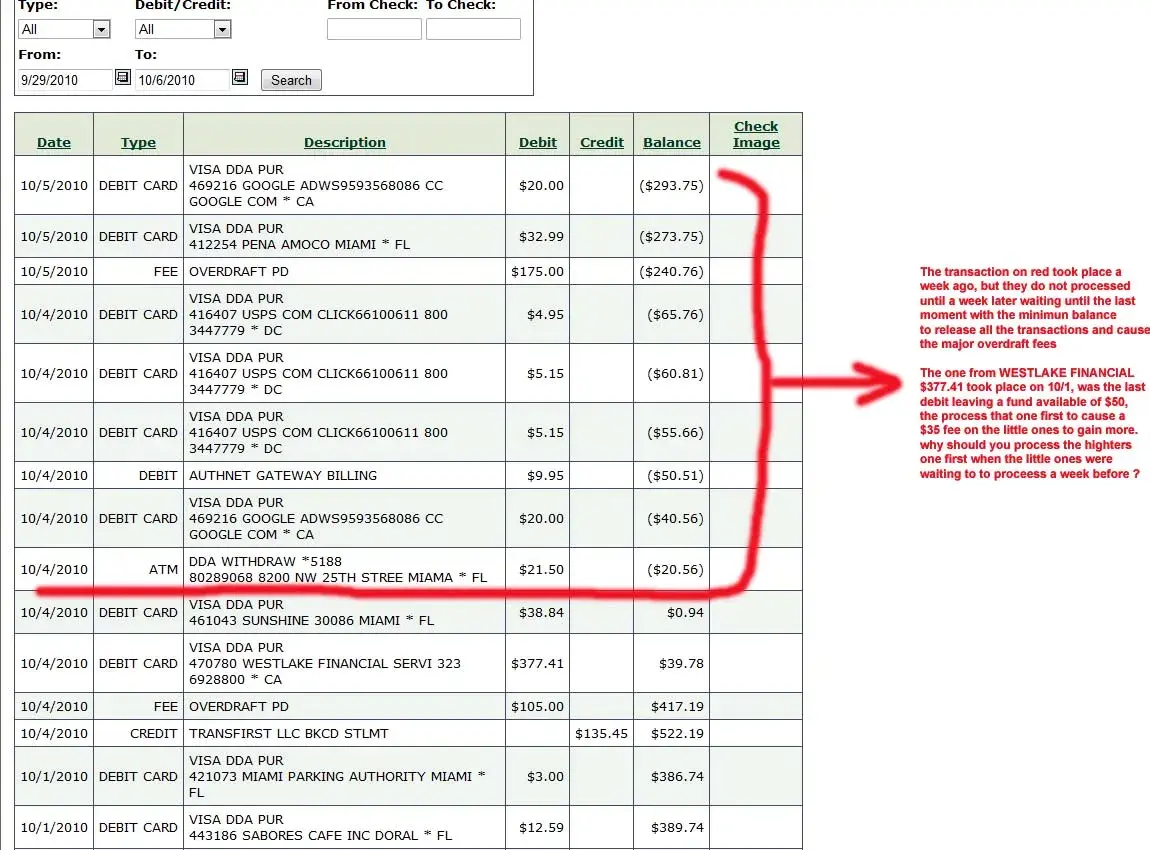 The "re-ordering" and changing the date of transactions by TD Bank has NOTHING to do with a consumer using a postdated check to pay for goods and services, knowing full well that there are not funds to cover that check.