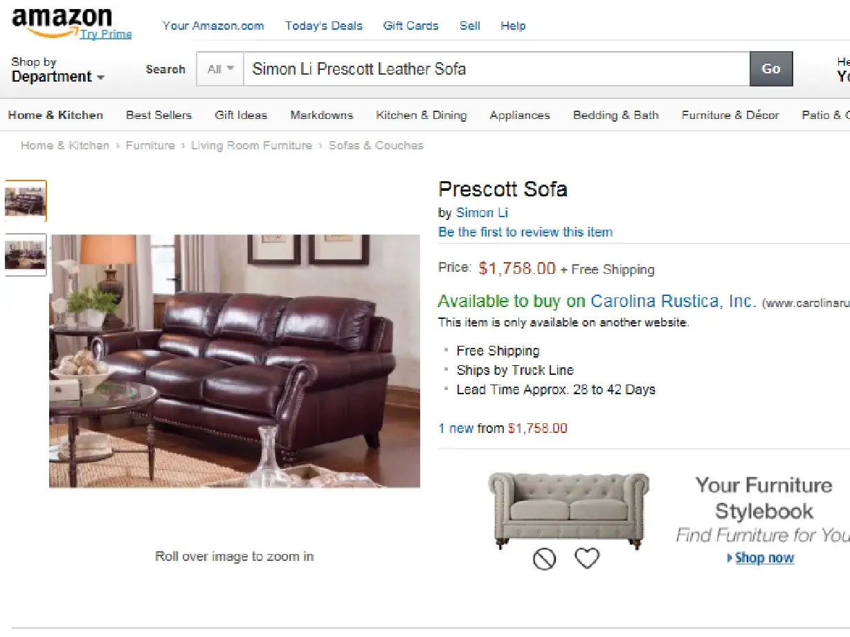 -Wayfair.com price is also $1, 758.00 (free shipping)