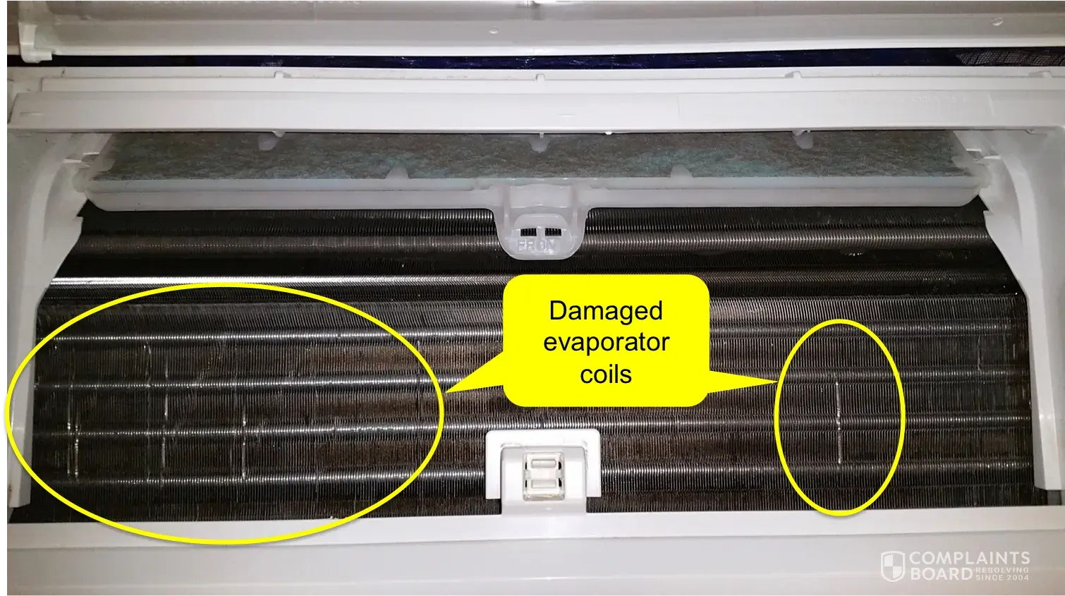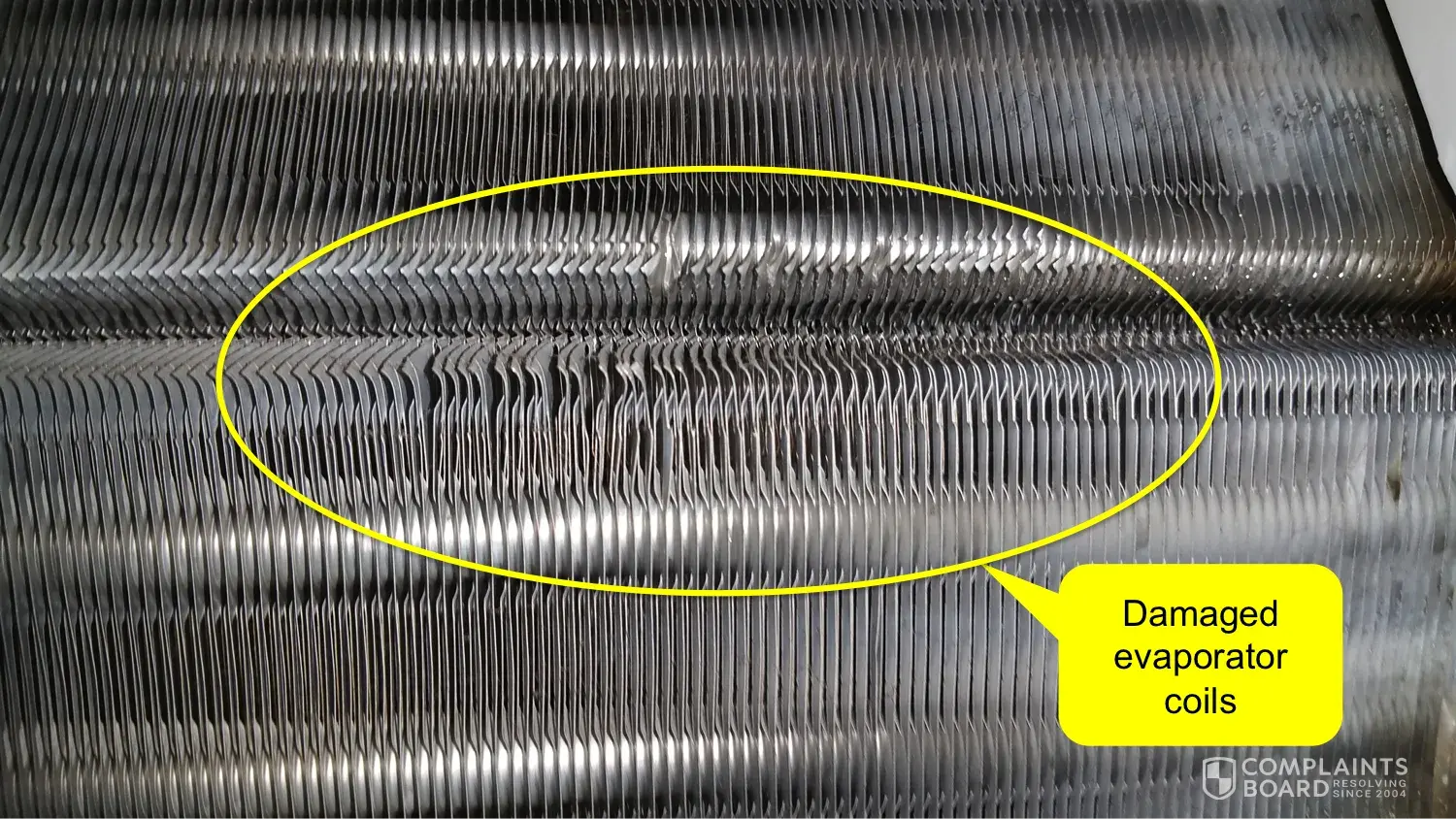 On 17 March 2017, a team came to service the air-con. About a month later, I wanted to remove the filtering nets of the indoor units for routine cleaning and was shocked to see that some parts of the evaporator coils were dented. That happened in all the three indoor units. I took some photos (see examples attached) of the damaged evaporator coils in case I wanted to make a complaint. However, I decided not to lodge a complaint then hoping that it might just be a one-off incident.