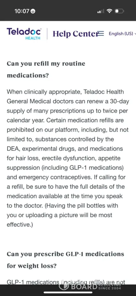 Reviewed their website prior to doing virtual visit for prescription refills. It only states controlled medications, birth control and erectile dysfunction medication. I only requested for refill of my thyroid medications i’ve been taking before, i even have my lab results. Provided denied refill and states i should follow up with a primary, which...