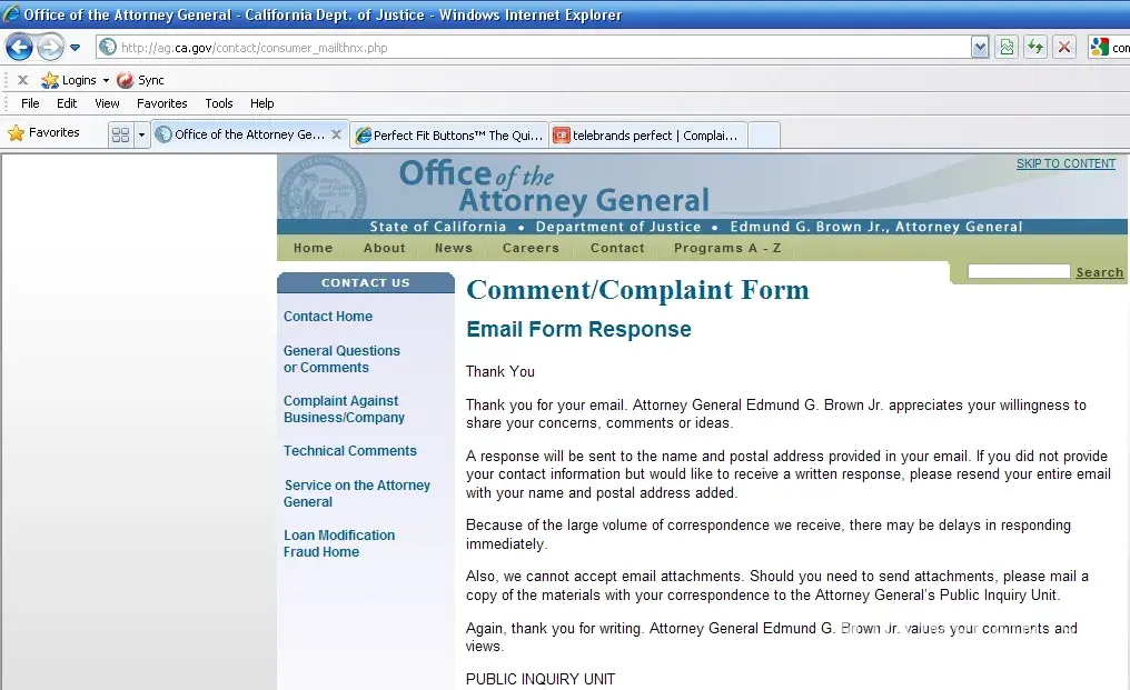 Here is the exact text from my complaint just filed online with the California Attorney General: