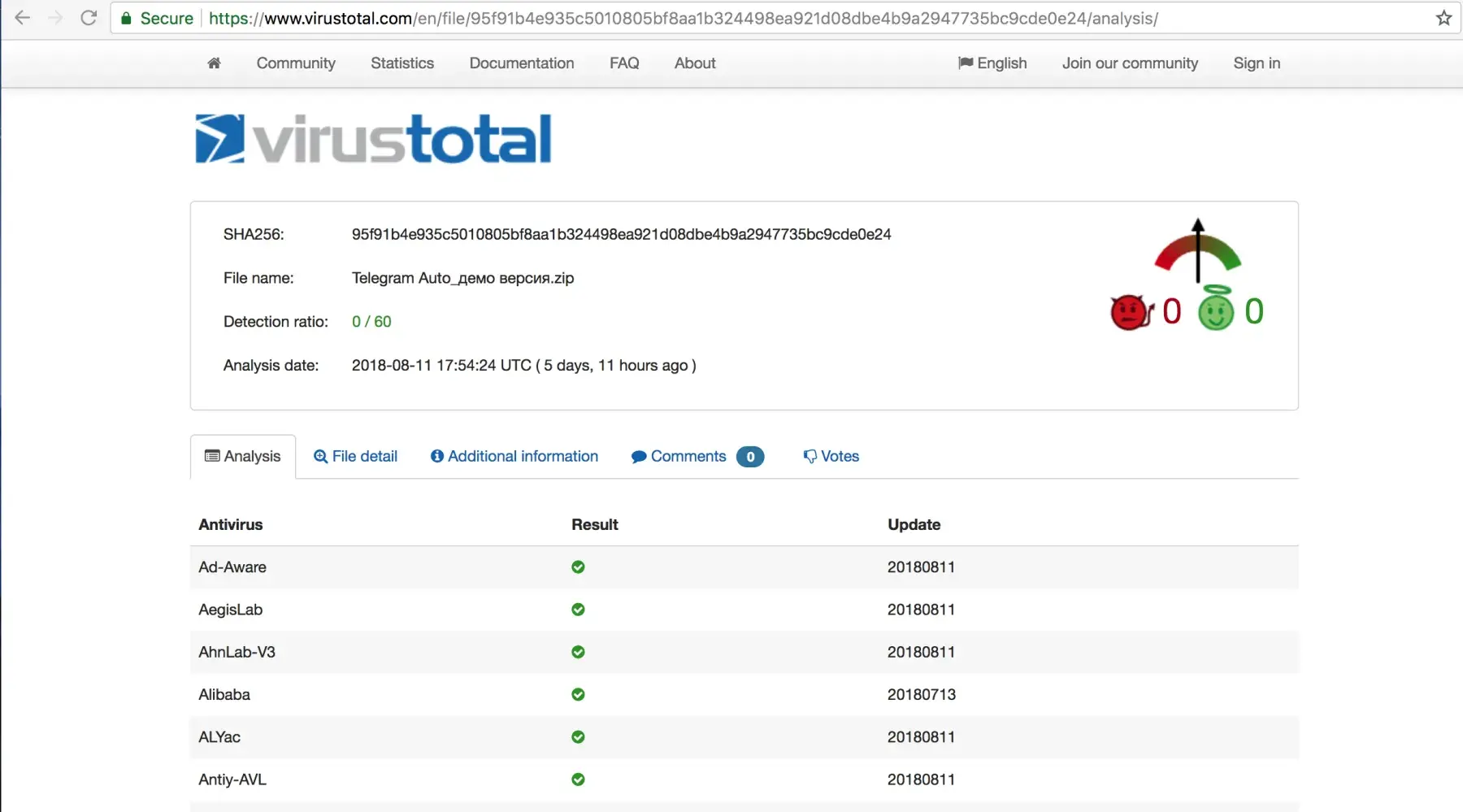 Its 100% safe. just checked with virustotal.com and file is clean. Please find attached screenshot. If you still have doubt, please download file from telegramauto.com (official site others are scam)and check by yourself on virustotal.com its not infected.
