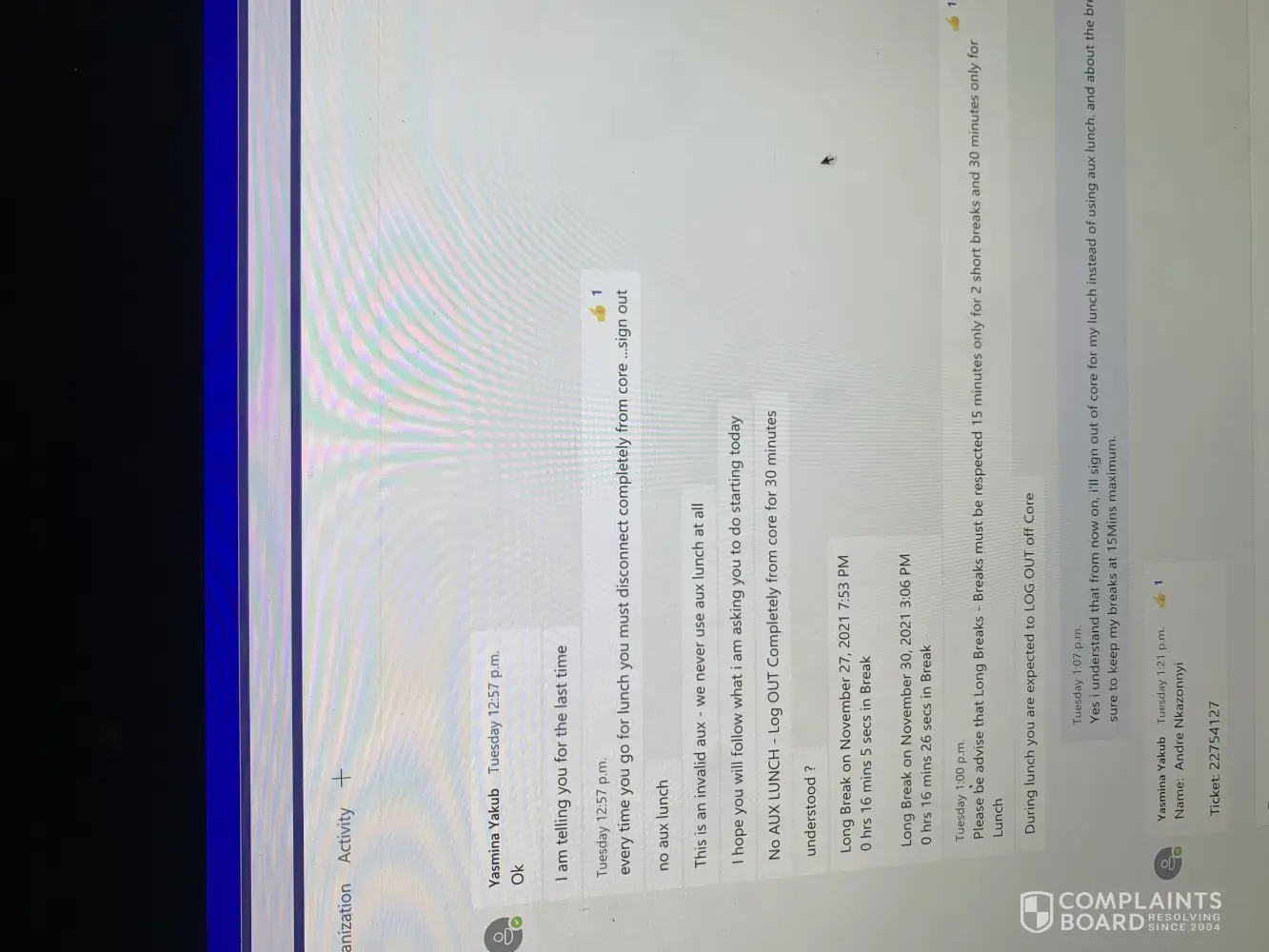 Since I have filed a complaint regarding Yasmina Yakub and her lack lustre abilities when it comes to team leading, She has been threatening to terminate me, would constantly try to intimidate me. Today she called me before I started my shift and told me she'd be firing me for 2 reasons.