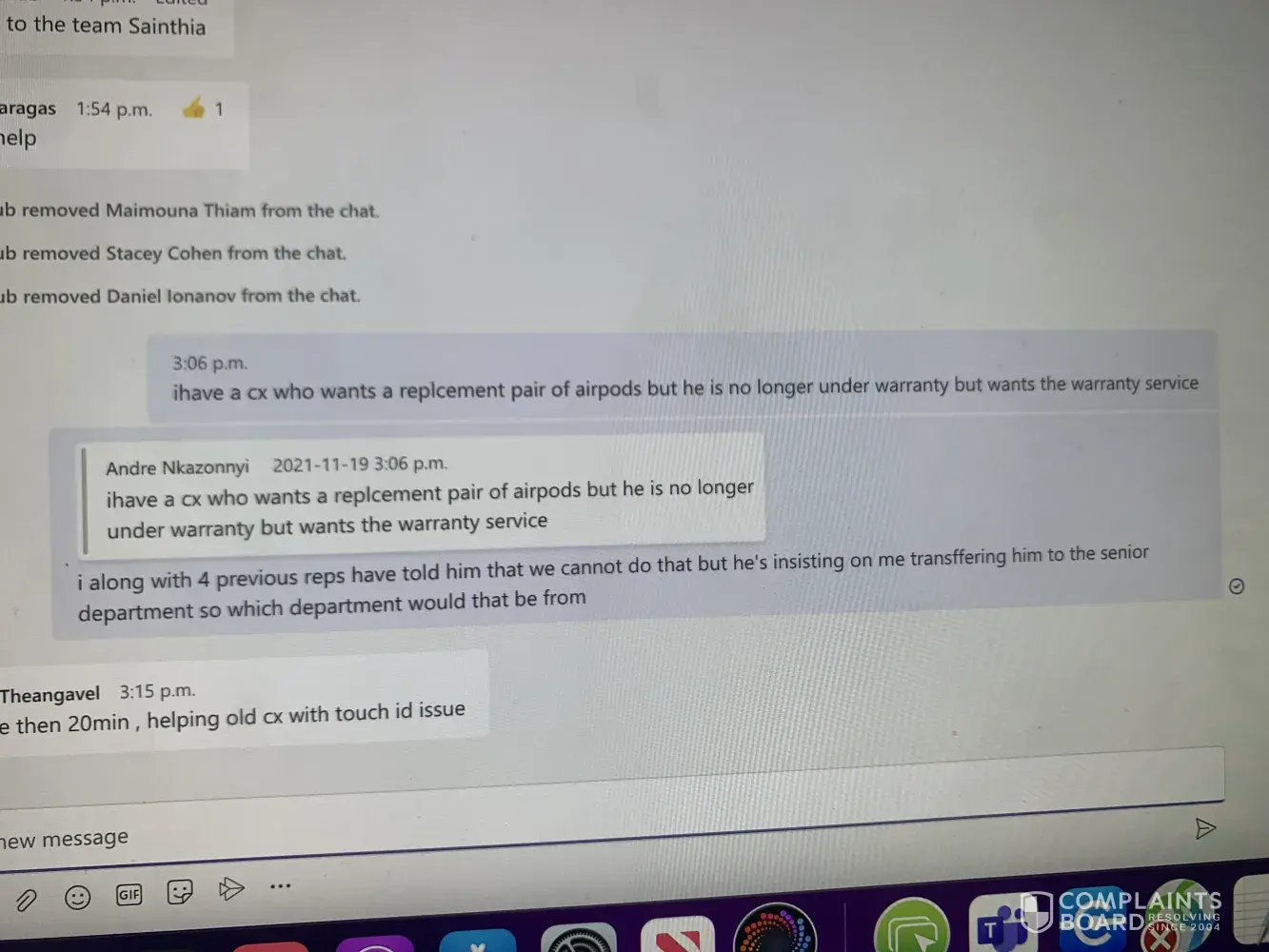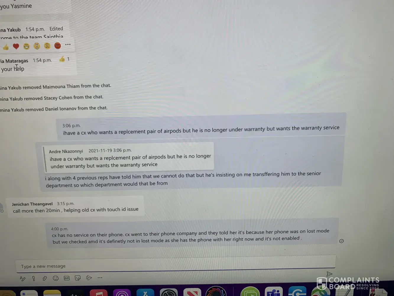 First reason would be my logging interactions, Yasmina states that I haven't logged my cases correctly when I have documented proof of me keeping up a 100% logging interaction on a weekly basis. She then did not provide the cases that have not been logged correctly. And secondly, she said that I had an Apple IQE fail for not assuring the customers, I make sure that for every single call that I receive, to assure the customer and make sure that they know I'd be happy to help them. Once again Yasmina has not shown me any recordings of calls in which I have not assured a customer. I believe that she has terminated me because I have previously filed a complaint about her. If a teleper Repress could review this and get back to me as soon as possible that would be greatly appreciated