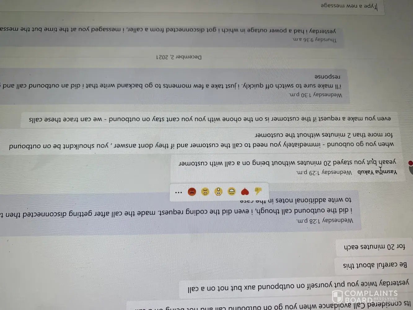 I'd like to file a complaint about (Yasmina Yakub) at Teleperformance. I am constantly being told not to transfer calls and that if I have questions about how to resolve an issue that I should reach out on Google meets to get a response from the supervisors. I do that constantly only to be ignored and left unhelped. She has told me about call avoidance before but now she is also telling me that if you don't call them back after the line has been disconnected, it's considered call avoiding….it would've been great if She told me this before but I was told about this just today. I send out messages to get help for my calls and she did not help at the time, she then tells me that she's going to terminate me in the Google meeting because I don't reach out to anyone for help even though I constantly send her messages.