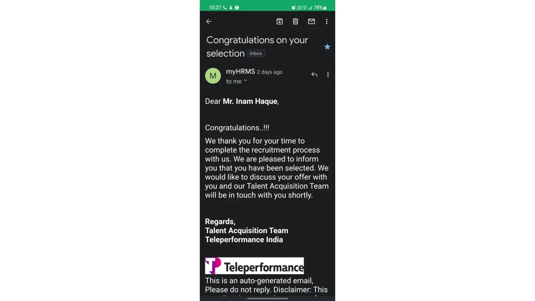 recruitment fruad by teleperformance with me (INAM UL HAQUE)