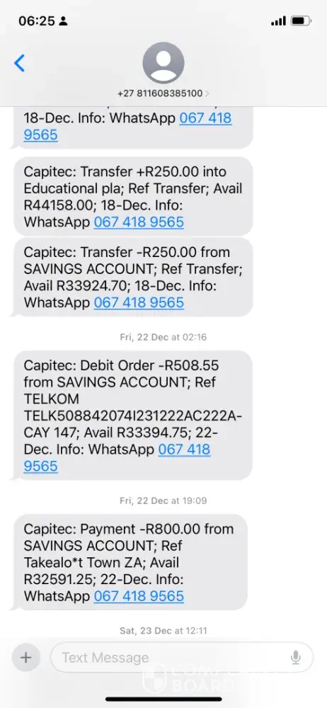 In December 2023, Telkom debited my husband's account, it bounced as I am the one that put his money into the savings (i was very scared of card cloning etc )especially with it being December.