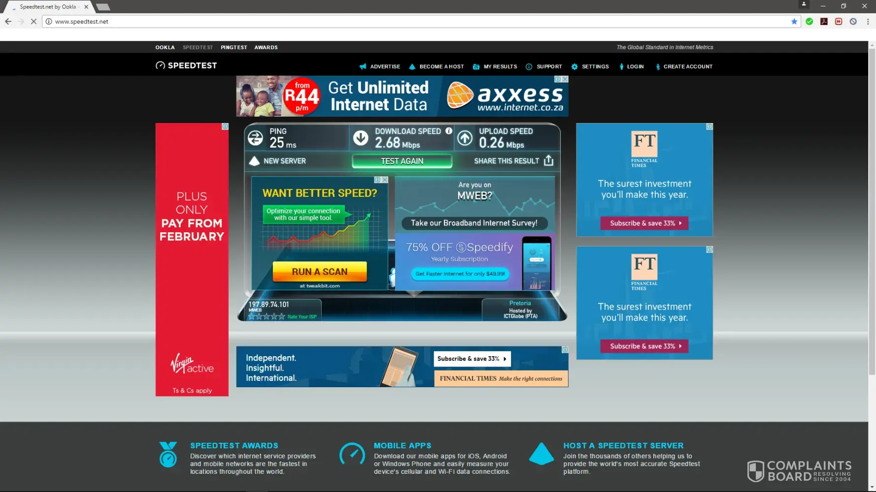 In the first month, I got speeds of around 8mb/s. Now in month 5, the service has degraded so much, that I currently only receive 0.6mb/s speeds.