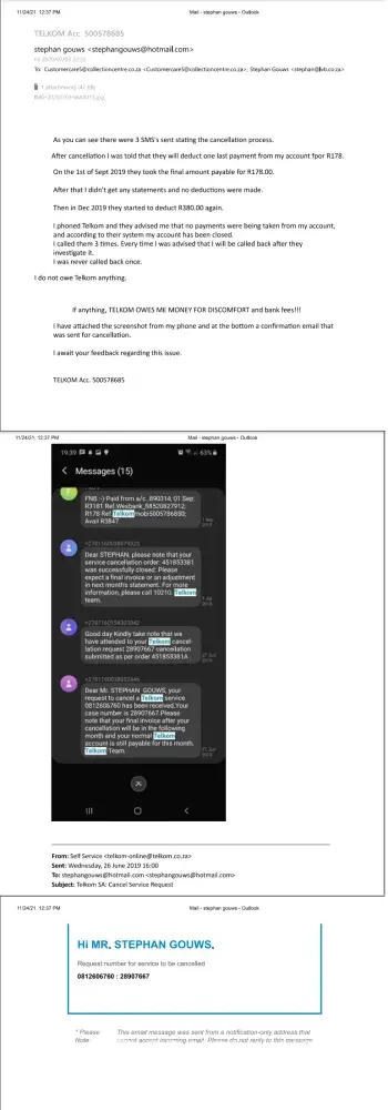Desired outcome: Telkom needs to stop claiming I owe them.