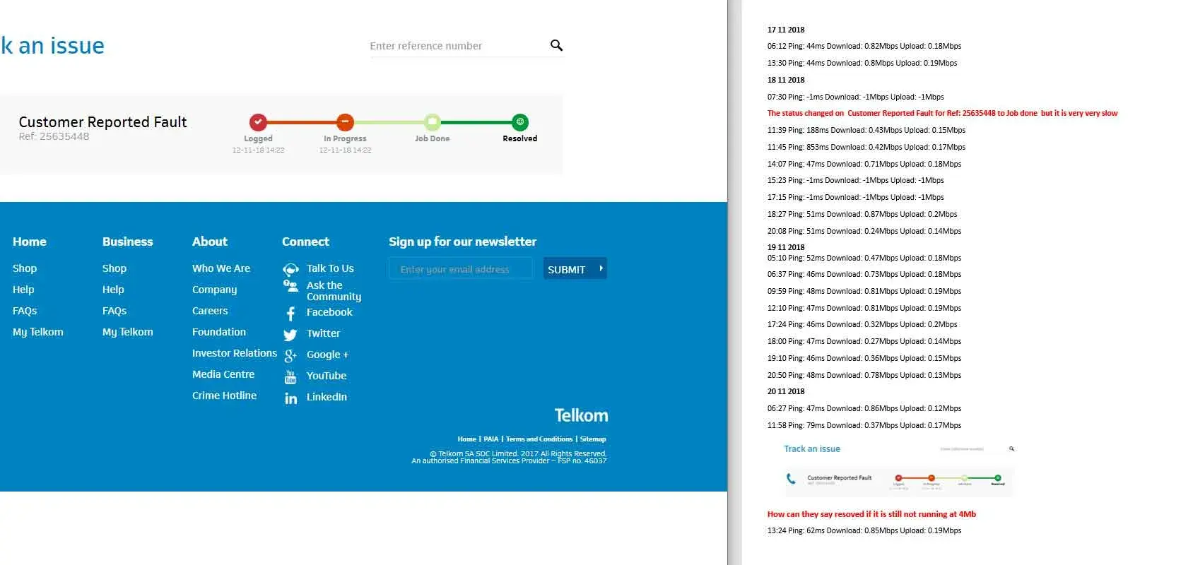 • 18/5/2018 - I spoke to Kgaogelo at the call centre who again promised that they will investigate and provide me with feedback. To date no response