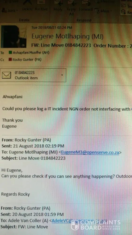 Telkom SA SOC no response from telkom regarding the moving of my line