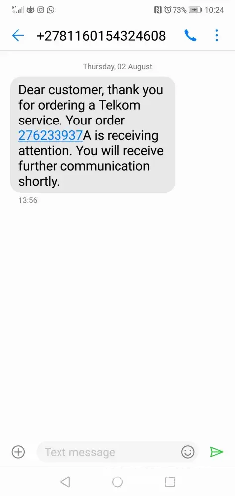 I received SMS notification in March 2018 advising that my disputes had been resolved satisfactorily and that a Telkom employee would be contacting me shortly. The disputes have never been resolved and I have had absolutely no communication from anyone representing Telkom.