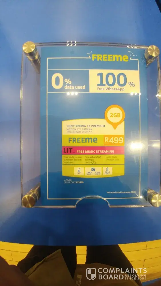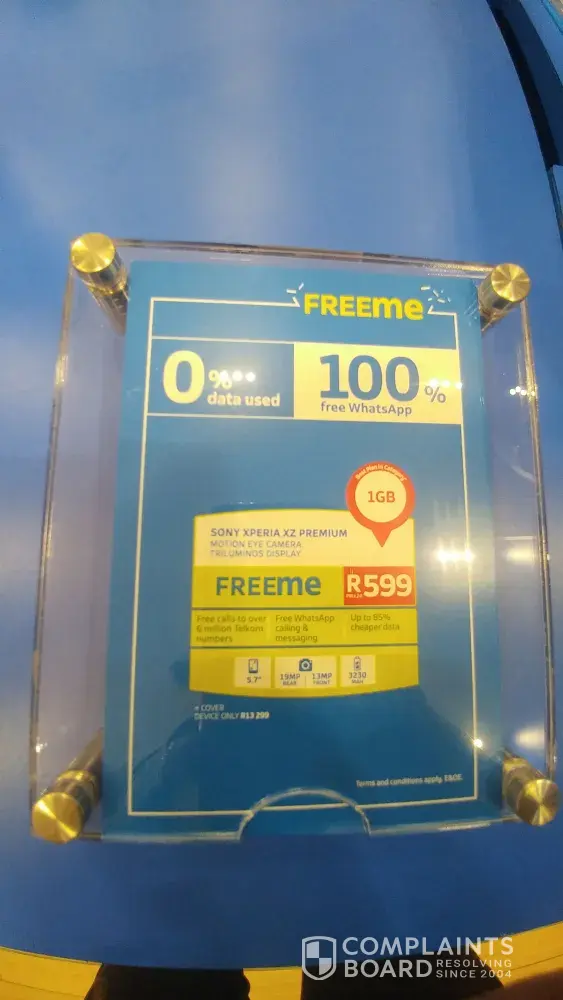 I went into Kenilworth centre store and on display they had the Sony xz premium for 499 with 2gb of data ... They then told me it wasn't on the system and they will get back to me the next day fortunately enough I took a picture of the false advertising and the next day when I had walked into the store they had changed the price to 599 for 1gb of data and refused to give me my package I saw first ... According to section 23(6) of the consumer protection act where two prices are displayed or advertised a supplier cannot request the consumer to pay the higher of the two prices due to their negligence my number is [protected] would like to receive my deal