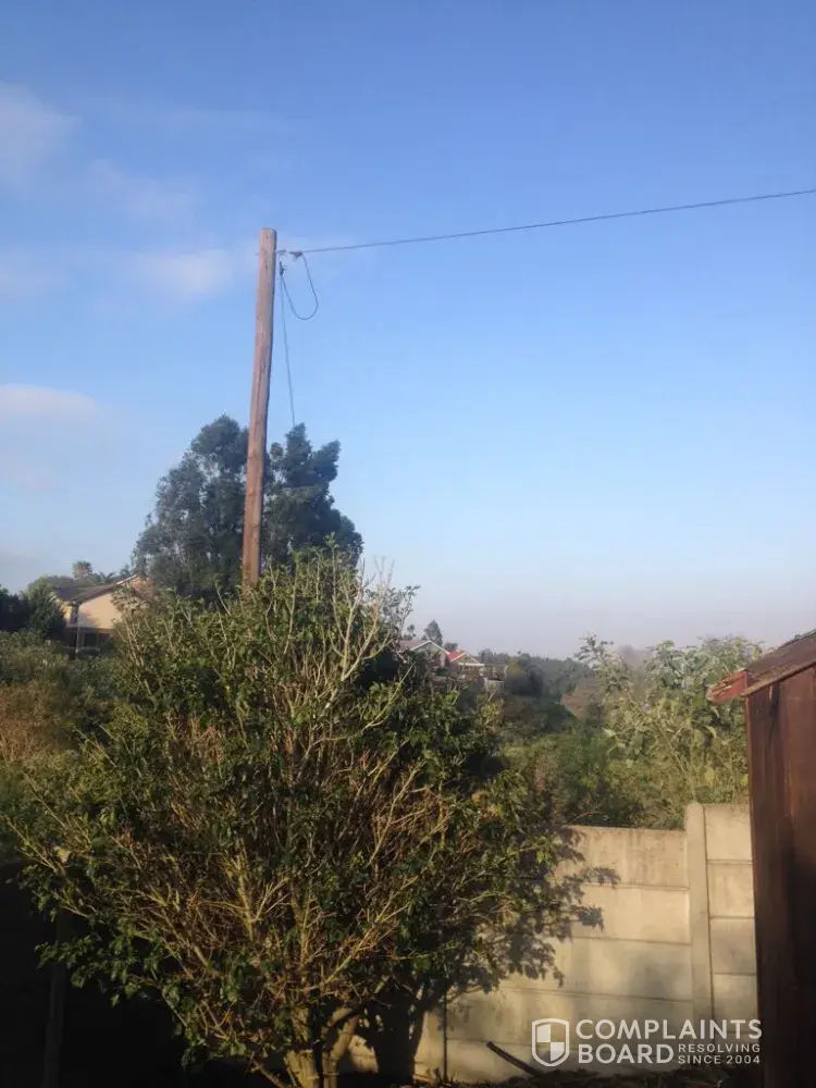 23 mei telkom-installeerder bel, hulle kom die lyn insit. Hy bel terug – daar moet eers ‘n paal geplant word voordat ‘n landlyn na my huis gekonnekteer kan word.