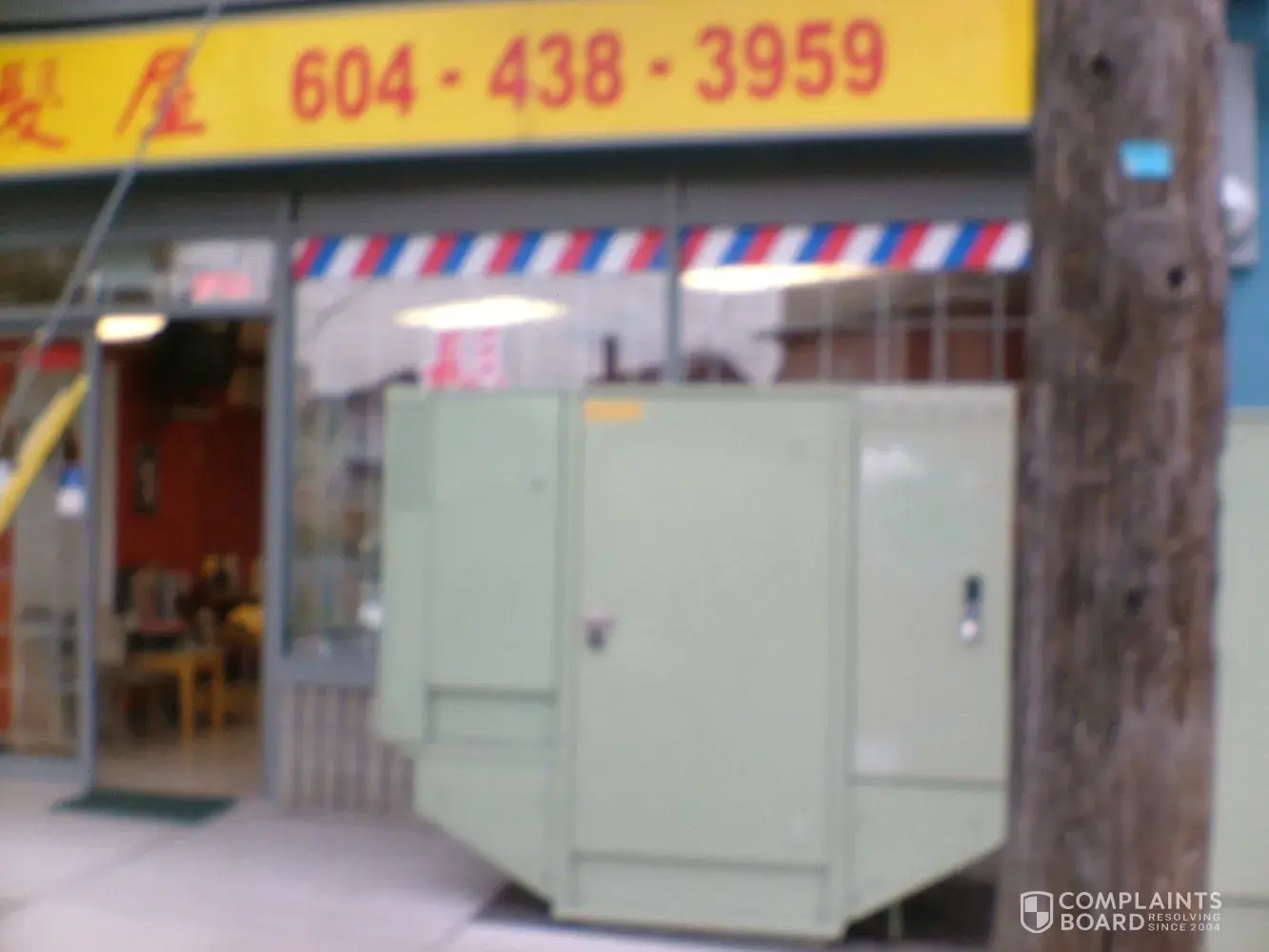 In front of my Hair Salon which is my private property, there're two big TELUS Cable Boxes installed which greatly prevents the daylight. There is not efficiency light even I turn the lights on. My eyes are getting much tired when I'm working. Furthermore, it affects my business, especially people from the West and North can't see my hair salon.