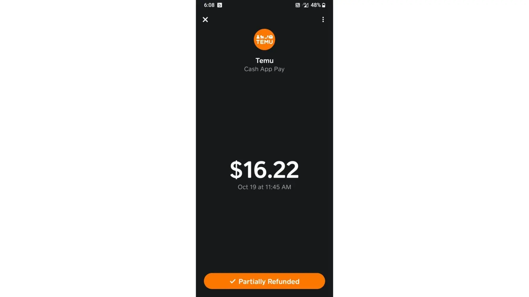 However, Cash App says that I recieved a "partial payment" of $16.22 with a balance of $60 still remaining.