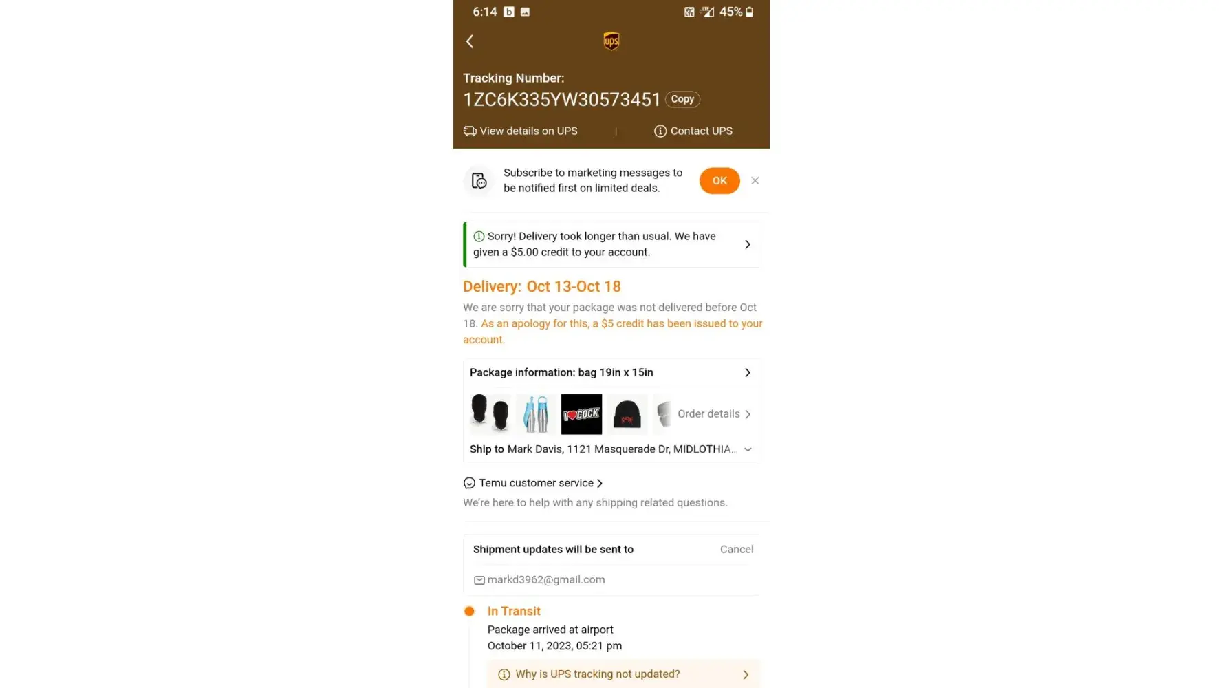 Have been waiting for a package I order from Temu the carrier is uniuni have contacted temu and uniuni regarding following order #Po211-[protected] for 10 items $25.51