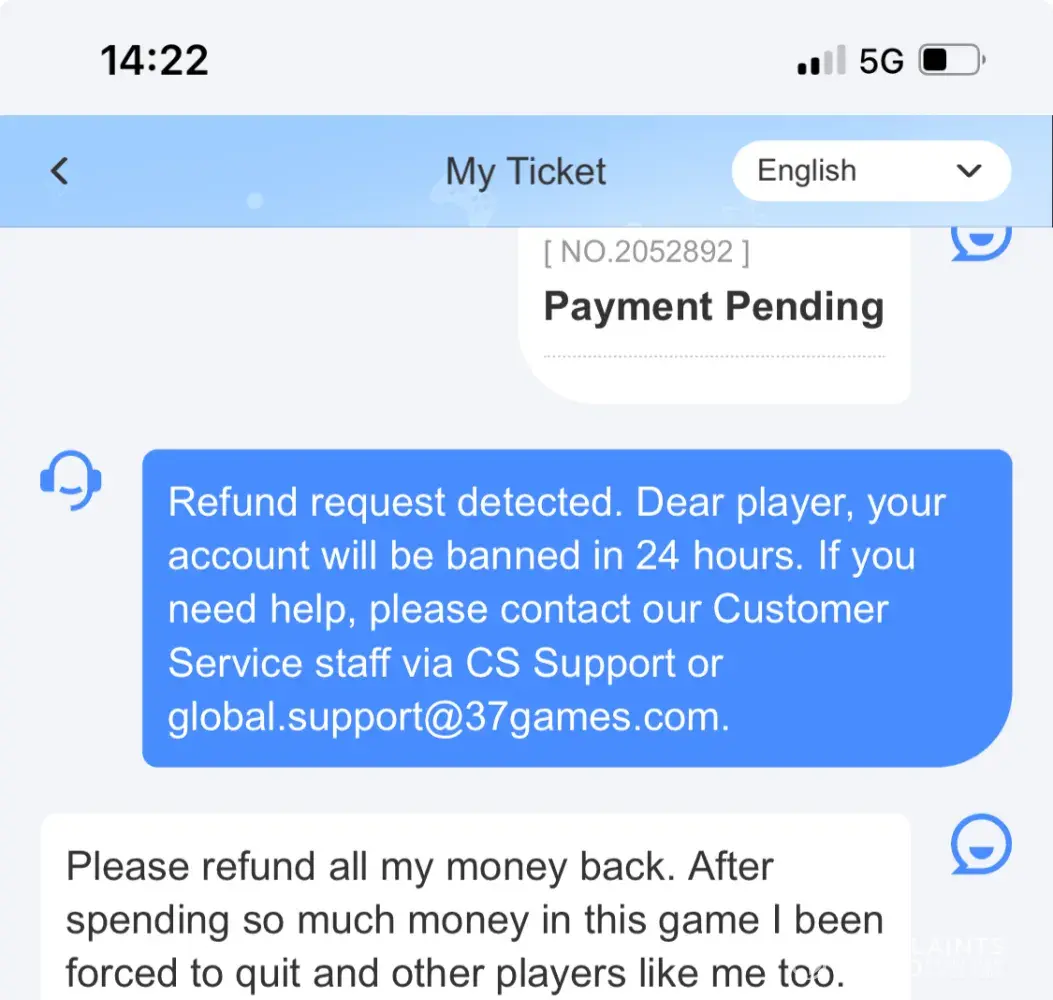 I requested support for a game that didn’t track, this is not the first time this happened but this time they accused me of breaking their T&Cs, without specific explanation and without proof. They proceeded not to respond to any email in the last month, I’ve never received my money or a response for my appeal. I would like for the offer to be paid off as it was completed in full and a video proof was provided
