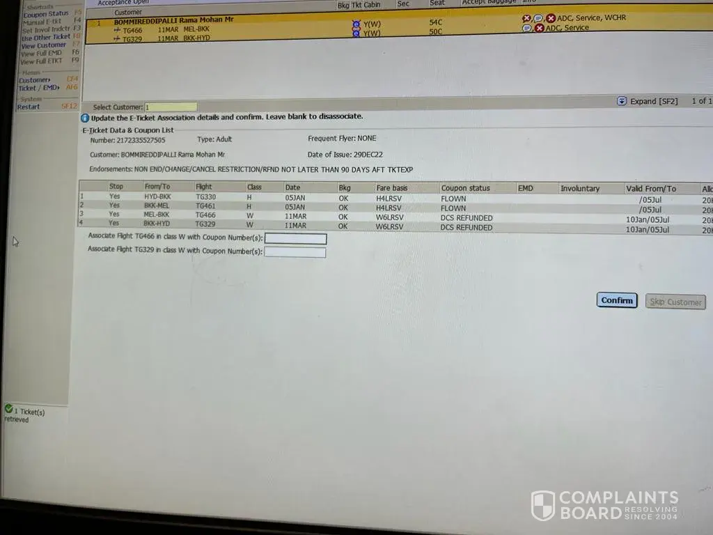 To: Reservations ; Ticketing ; ropsvc@thaiairways.com ; contact@service.thaiairways.com ; customer@thaiairways.com ; opsvc@thaiairways.com ; customer.service@thaiairways.com.au ; public.info@thaiairways.com