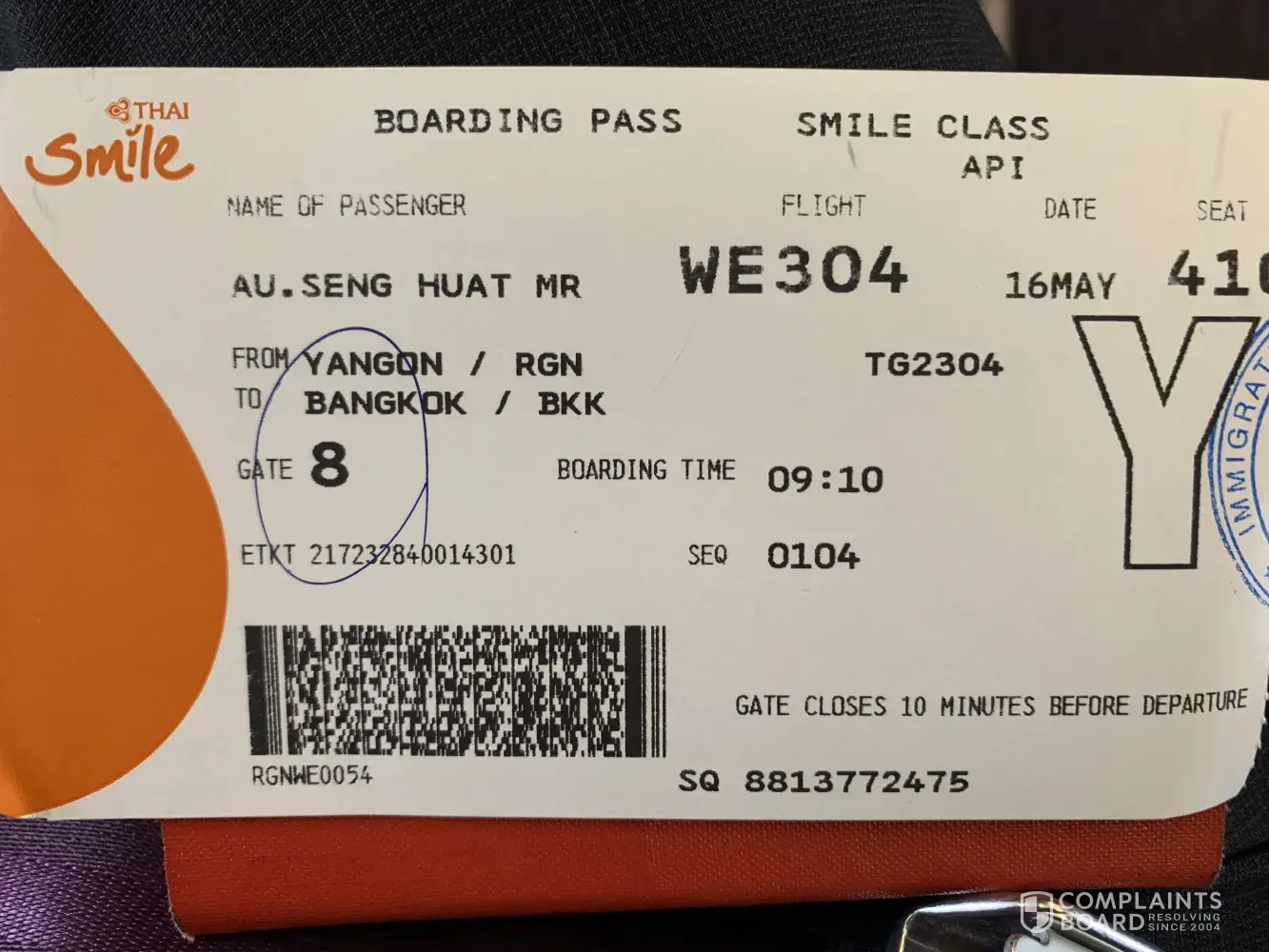 was refused access to sky lounge before boarding from yangon/bkk
