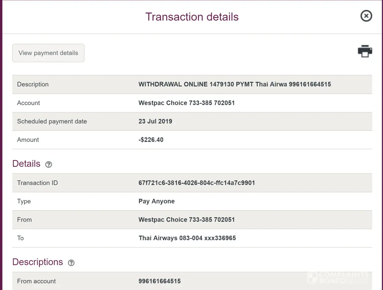 I made an online booking using my points and paid the fee and taxes using Poli, so the amount came out of my bank account straight away but no tickets were issues.