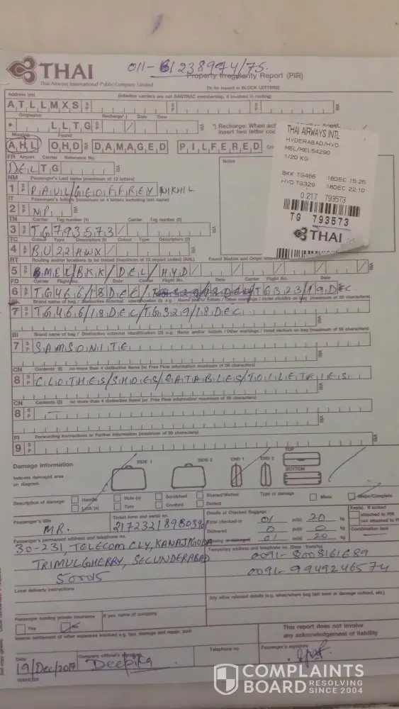 To make things worse, before I boarding the flight at Melbourne airport, THAI airways staff informed me that my checked in baggage was not going to arrive with me to Hyderabad and they were unsure if I had to collect my luggage at Bangkok airport or Delhi airport. On probing the issue, I was sent to another counter where a female staff member who could not speak in proper English, played a dirty game by telling me a lie that she solved my issue and I could collect my luggage at Hyderabad airport on my arrival as per my baggage claim receipt.