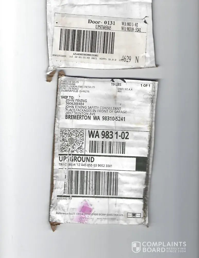 As for the 25-ft flag pole, identified to me as being back-ordered when I received the golf ball and 4x6 flag. Later I received water damaged box that was taped up on both ends and several places in between that supposedly contained my flag pole. When I opened the package, I found a 25-ft flag pole inserted into itself and a warranty card, nothing more. No instructions, no white PVC insert as shown on the picture. It was obvious that the weather damaged box had failed open and several items were lost. Exactly what I have no idea, since no one has an inventory of what was supposedly sent with the pole. So I have no idea if my pole has all the associated plastic pieces and parts that I was supposedly to receive. After numerous calls, finally on 20 Aug 2021 I receive a telephone number of the flag pole manufacturer at UnCommon-USA. They state they have no record of this shipment. They have no idea who American Legion Emblem Sales is nor do they have any record of any shipments for them...?
