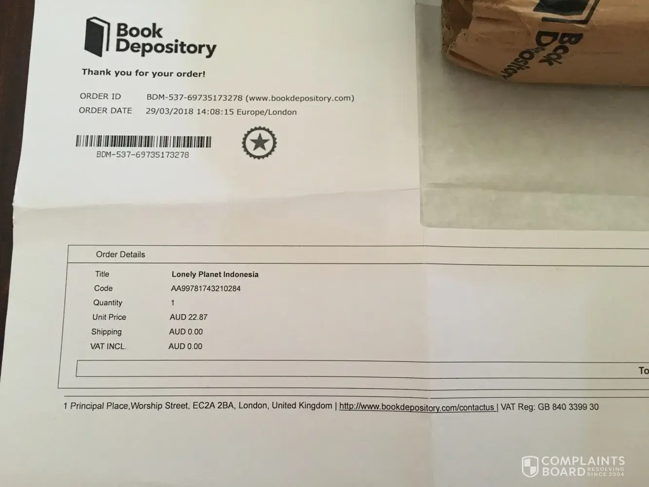 The Book Depository book not received
