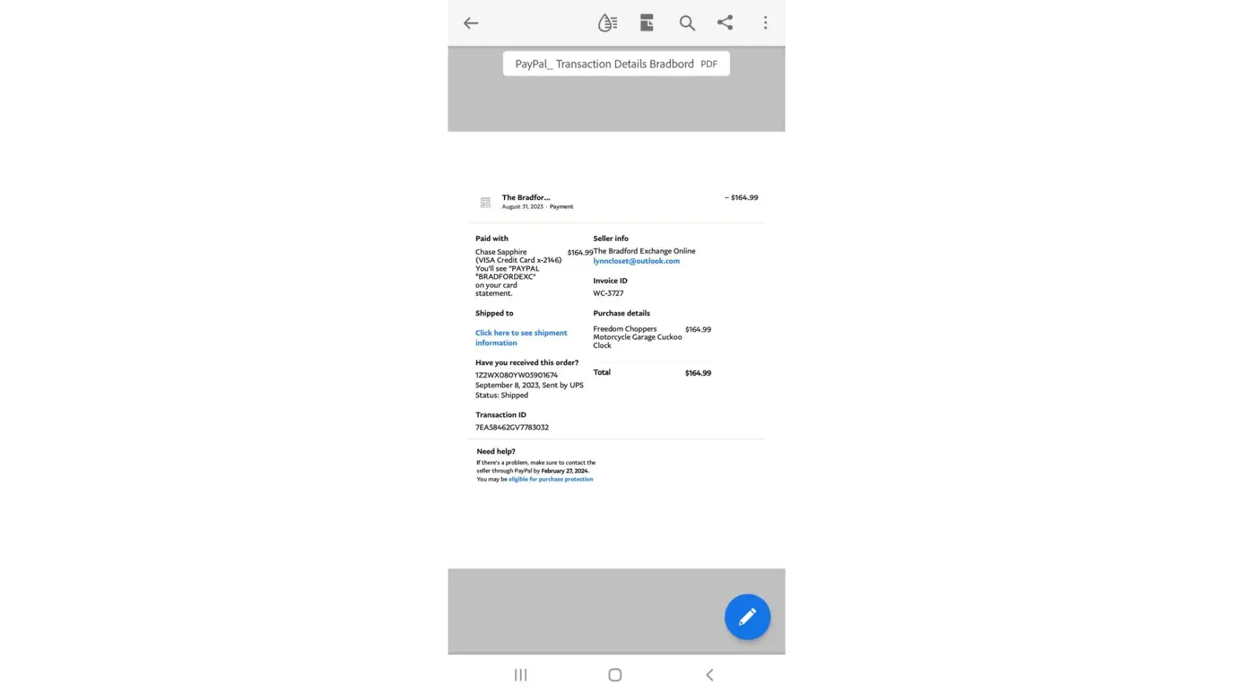 I ordered a Freedom Chopper Cuckoo Clock in September 2023 from the Bradford Exchange online for $165.00, paid for it through my PayPal account, it was delivered to me in October 2023 . The package had another persons name above my address, no problem. After contacting customer service they informed me that my credit card declined the charge. I asked them for the last four digits of the card and I informed them it was not mine. Then they assigned my name to the persons account whose name was on my package and they demanded $271.00 for the clock. After sending my PAYPAL transaction and a copy of my credit card statement showing the Bradford Exchange transaction they still refuse to acknowledge my purchase.Now November 2023 the clock stopped working I contacted customer service , they sent me a return label I shipped the clock back, now they informed me they will not replace my defective product unless I pay them, the Bradford Exchange is a fraud company to deal with.Â