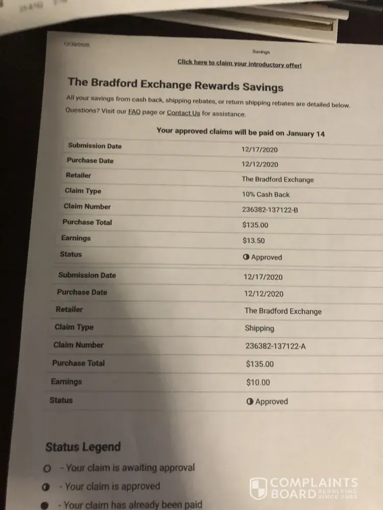 Purchased rings. They weren't anything like described on their website, even had 2 jewellers confirm that they were in fact cheap and fake - absolutely not worth $219.00 (postage included) so I returned them. The Bradford Exchange knew they were being returned, they provided me with the return address and the promise and reassurance of a full refund. Package was returned via Australia post, with tracking. They absolutely, without a doubt have received these rings.