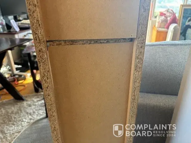 Furniture purchased December 2023 with full warranty and received January 4,2024 in unsatisfactory condition. Contacted The Brick January 5, 2024, and a furniture repairman indicated it was a manufacturer issues and was unrepairable on January 30, 2024, that was sent out by The Brick.