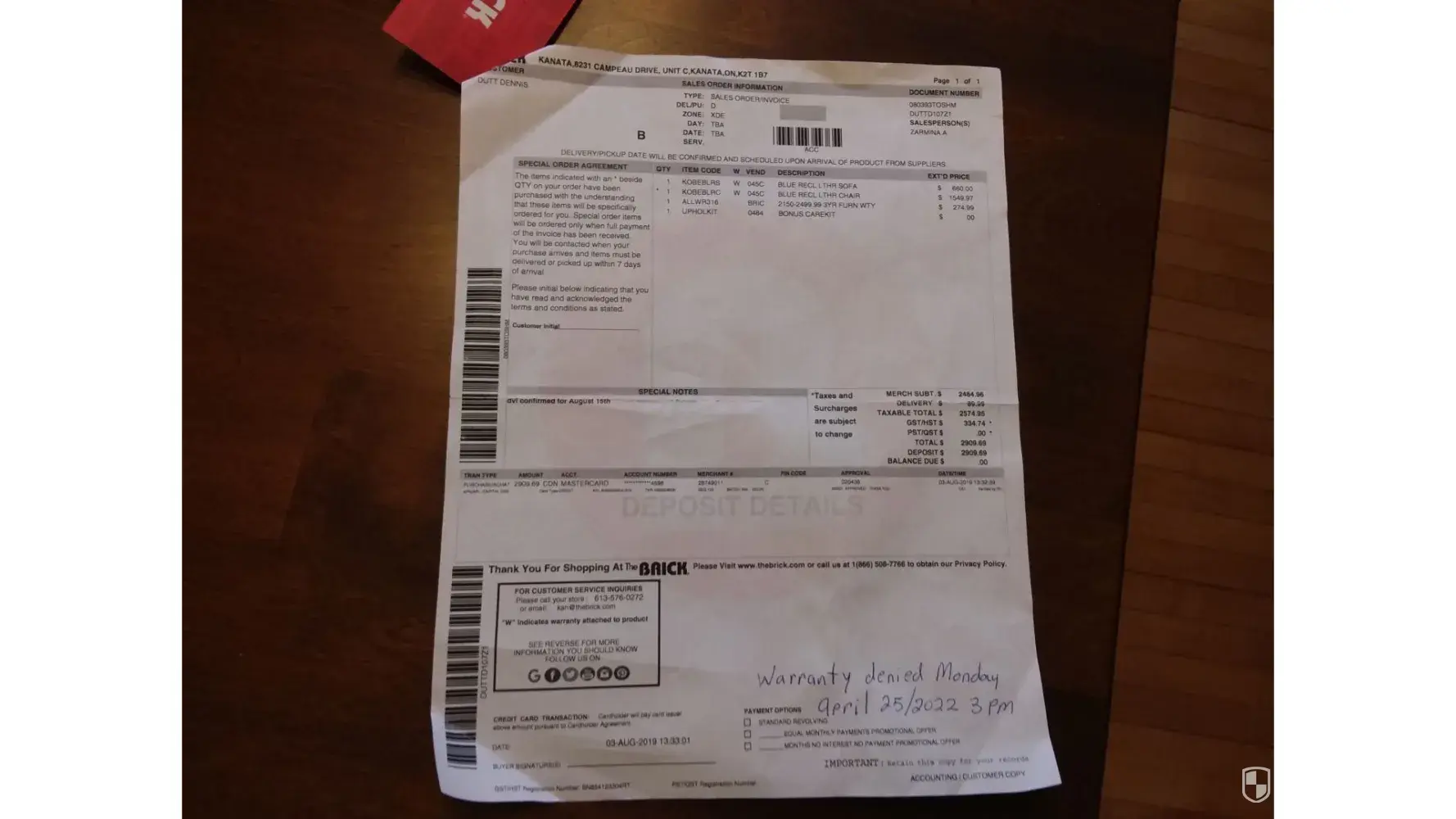 We believe in The Brick's reputation and would like The Brick to consider refund the unused 3-year warranty.