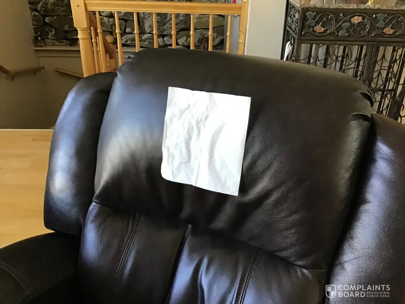 The leather on the first recliner footrest and corners of the armrest are showing ear in the form of small round spots. The second recliner headrest has become tacky and I had to put a cover on it.