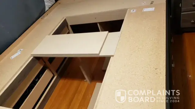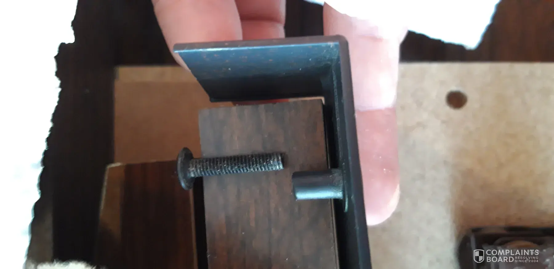I am very disappointed with the outcome of this purchase. I bought these pieces of furniture for a hefty price to have a comfortable desk from which to work from home. Instead, the delivery arrived two weeks late, I have one broken library which was very bad quality to start with and a desk which is missing screws so cannot be assembled in its current state. The professional took pictures of the defect and I also provide you with a picture.