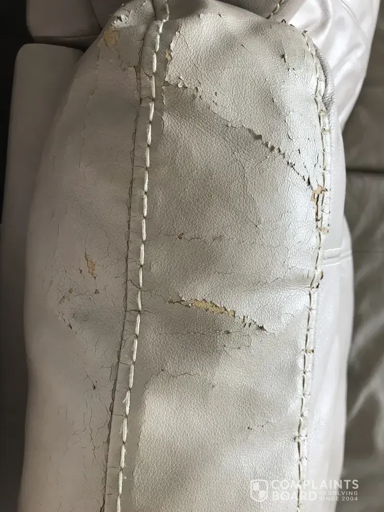A specialist who examined the tear told me that it was not genuine leather, contrary to what was indicated by the sales consultant and in the receipt (this case can be recognized as fraud in court).