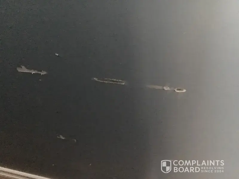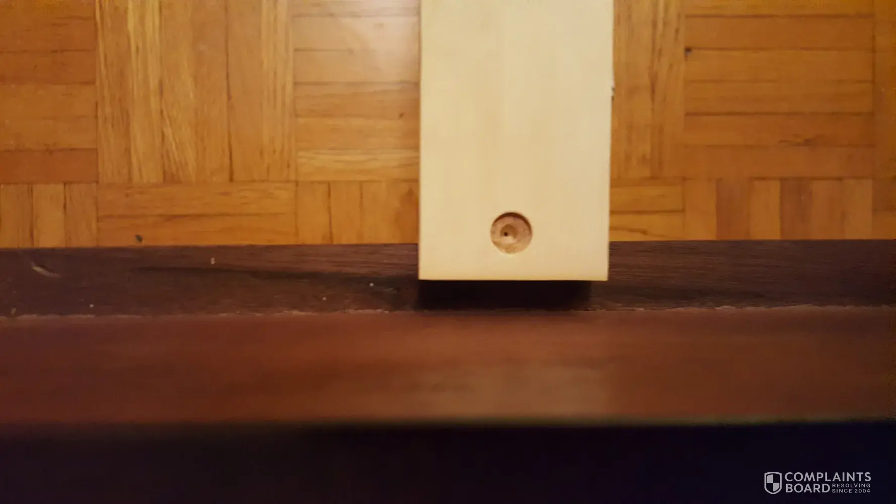 issue 3: ask for delivers to be careful due to the bedroom being newly renovated. fresh paint on the wall the day prior to the delivery date. the movers were very friendly but after the assembly one of the men came and talked to me told me i had 3 days to inspect the furniture if any damage noticeable call and they will exchange it. after the mover left i inspected the furniture and noticed there was a scratch in my newly coated and painted wall. when looking closer i noticed a chip on the left side of my headboard im assuming assembly and a gouge on my wall from the screws attached to headboard.