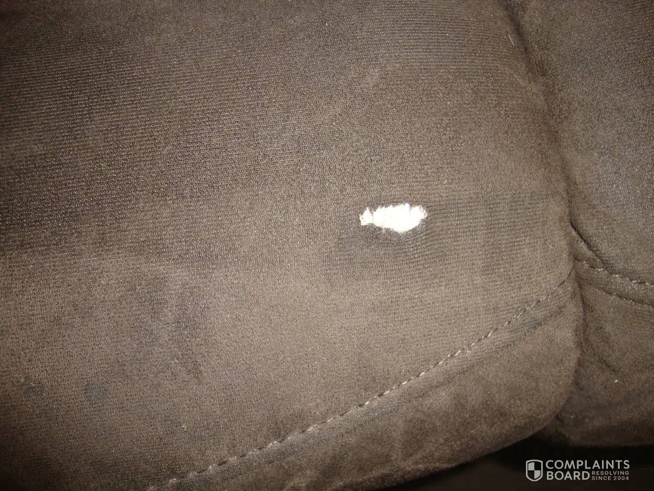 One of the sofas was fixed by a Brick repair individual. During his visit, by mistake, he cut the center of one of the seats. The hole is getting bigger and bigger each day. After this incident, another Brick adjuster visited and decided that both sofas need to be replaced.