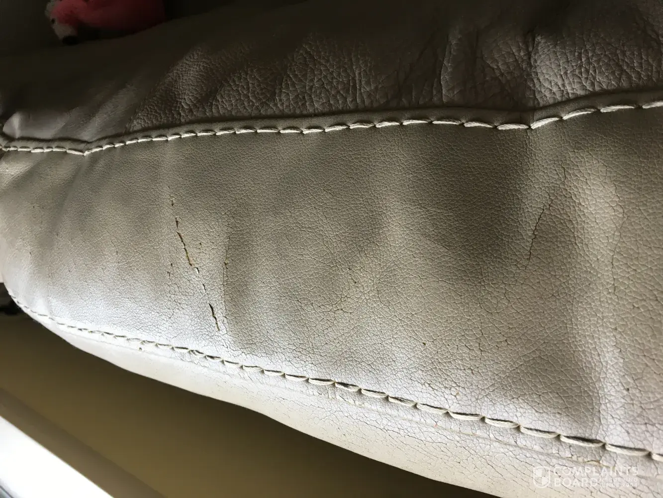 We really like this furniture. We have the oversized chair with powered recliner which is in great condition. Our concern is with the couch. The leather is splitting with cracks on the very top of the couch along the head rest area. This makes us wonder whether this real leather or not.