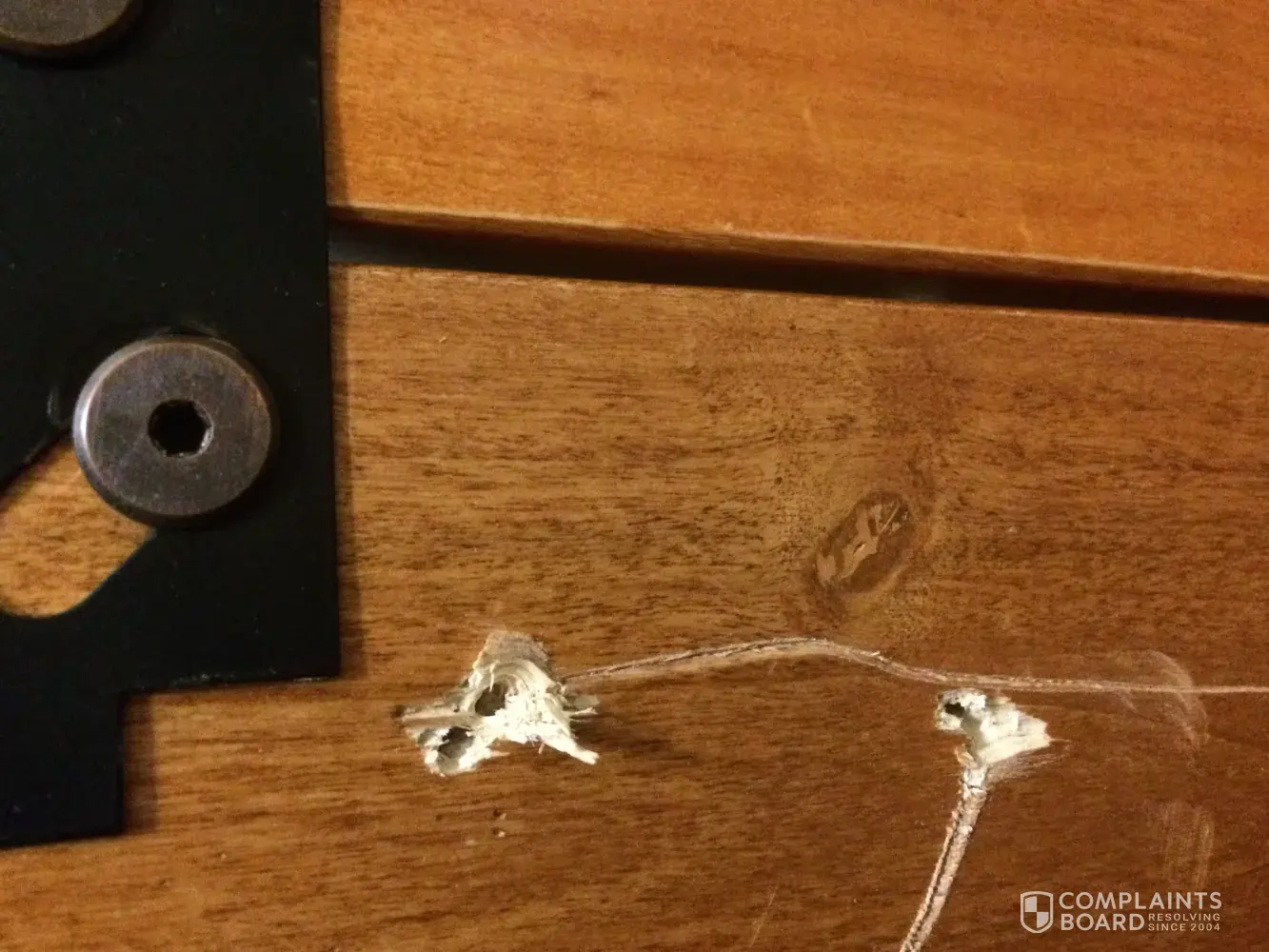 Complaint was raised in Aug 2016 and after follow ups we were told to wait for 4 months to get the seat repaired. Accordingly in Nov 2016, a service technician visited us with the middle seat cover but the cloth that he brought didn't match exactly with the rest of the sofa & also he confirmed that other seats are wearing off, so he himself recommended to inform the Brick about the same and he had taken pictures himself to let Brick know. He also fixed the screw that fell off and confirmed that it was never drilled correctly in place to start with, so it was a manufacturing defect.