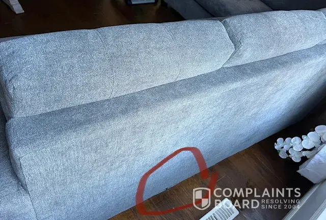 We waited few months to receive this sectional. The sectional we received arrived with a tear in the back.