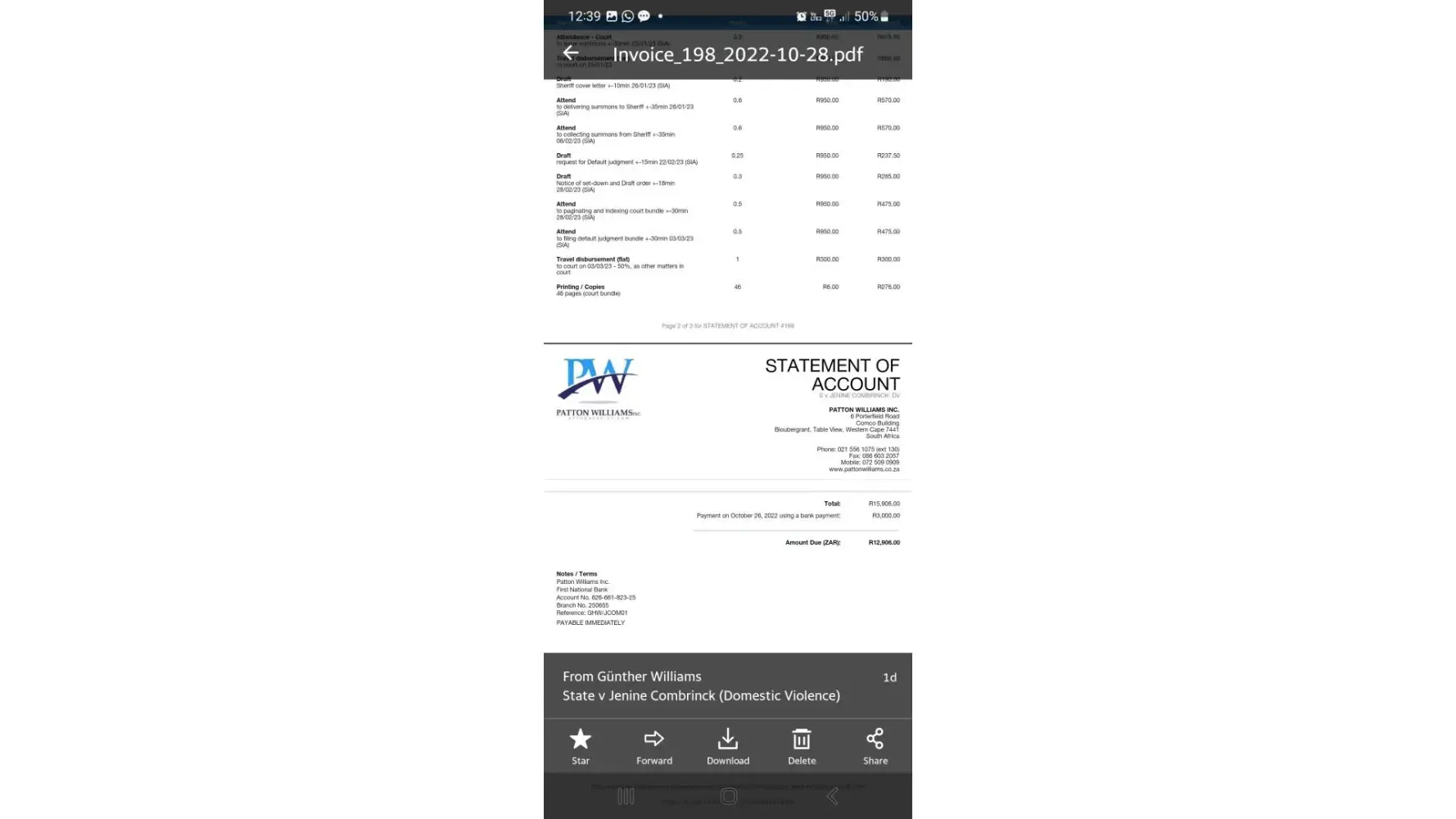 I contacted Quanter the Laywer from Patton Williams attorneys to go and get my daughter out the police man that arrested her was found quilty off misconduct Quantar requested me to pay R3000 immediately wich I did how ever he didn't get my daughter out off jail the following day I received a invoice for R9000