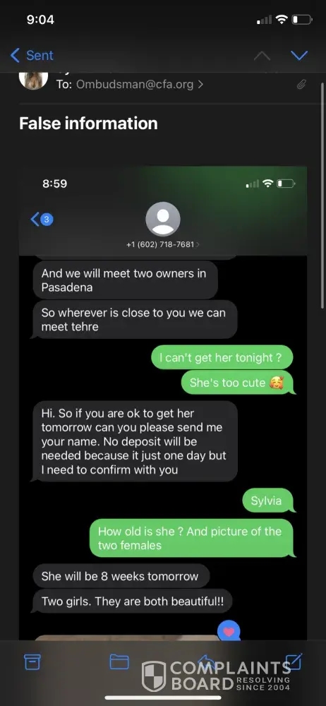 Has not followed the Code of Ethics! Sold a sick kitten and in less than a week the kitten has been to the vet twice with a fever, upper respiratory infection, oozing eyes. This is not right for a breeder to sell a sick kitten for $1500 and not disclose the illness.