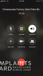 phone number for cheesecake factory complaint line