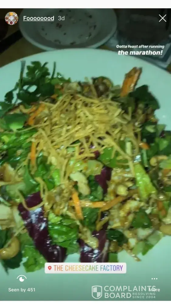 The picture I have included was from the night I ate of my salad. It's a picture I posted to social media, the location is tagged and the date is "3d" as in 3 days ago.