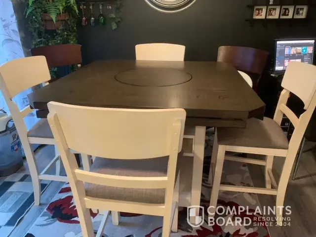 Now the delivery company says I refused the order. I replied that the trucking company delivered and the problem is finally solved so the trucking company must have confused their notes concerning deliveries. Again I receive another email from Classy Home asking why I refused delivery as that is what the trucking company says. I guess they didn’t read my last msg to them. So it took way too long to finally get a replacement and have an upside down table in my dining area.