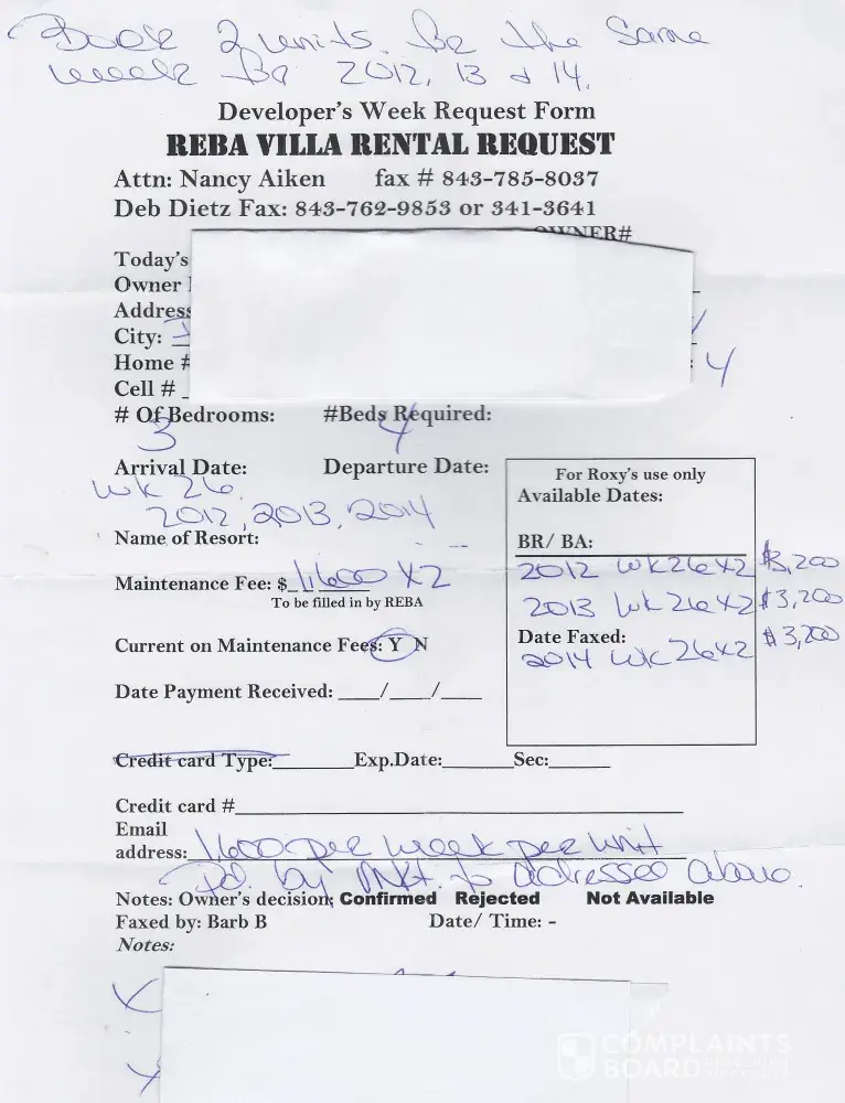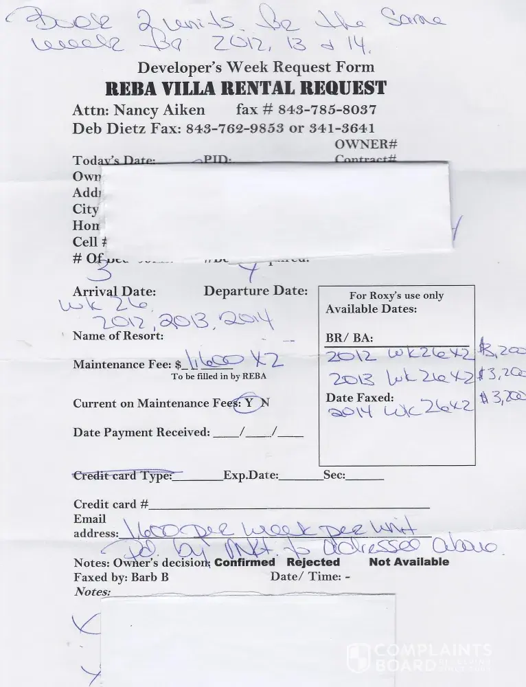 It appears they have done it to others on here as well. How can this family be allowed to make these fraudulent statements to people. I have had several affiliates of Coral Resorts since tell me that these forms are bogus. There is NO company that has ever "bought" weeks from them or owners especially. Reba management has even said that most owners end up paying a company upfront money out of Virginia to advertise their week and the weeks never rent. All LIES